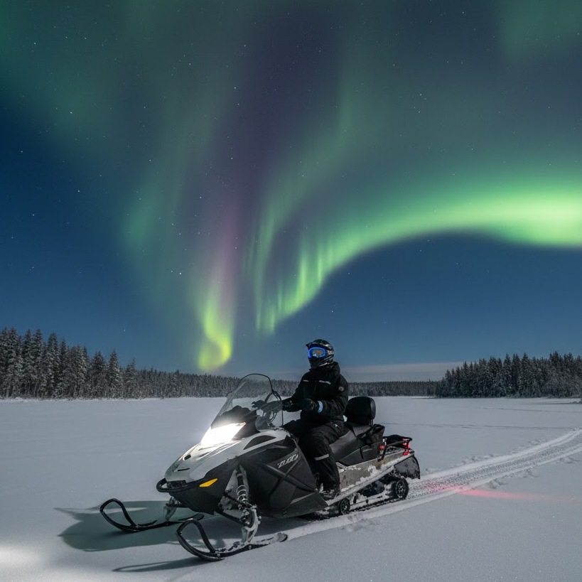 Join us to experience the magic of Nordic nature at dusk. Travel through the beautiful winter landscape with the lights of a snowmobile on before stopping in the middle of the dark forest. While the guide lights a campfire, listen to stories and interesting facts about the Northern Lights. Enjoy a Lappish snack and barbecued sausages while you watch the sky. With luck, we will be able to catch a glimpse of the Northern Lights. *For this excursion, a valid driving licence is sufficient.