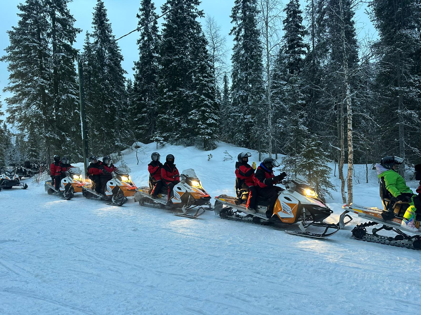 Join us to experience the magic of Nordic nature at twilight. Ride through the beautiful winter landscape with your snowmobile headlights guiding the way before stopping for a break in the middle of the forest, in complete darkness. While the guide prepares a campfire, listen to stories and interesting facts about the Northern Lights. Enjoy a Lappish snack and grill sausages over the fire while gazing at the starry sky. With a bit of luck, we may even spot the Aurora Borealis.
