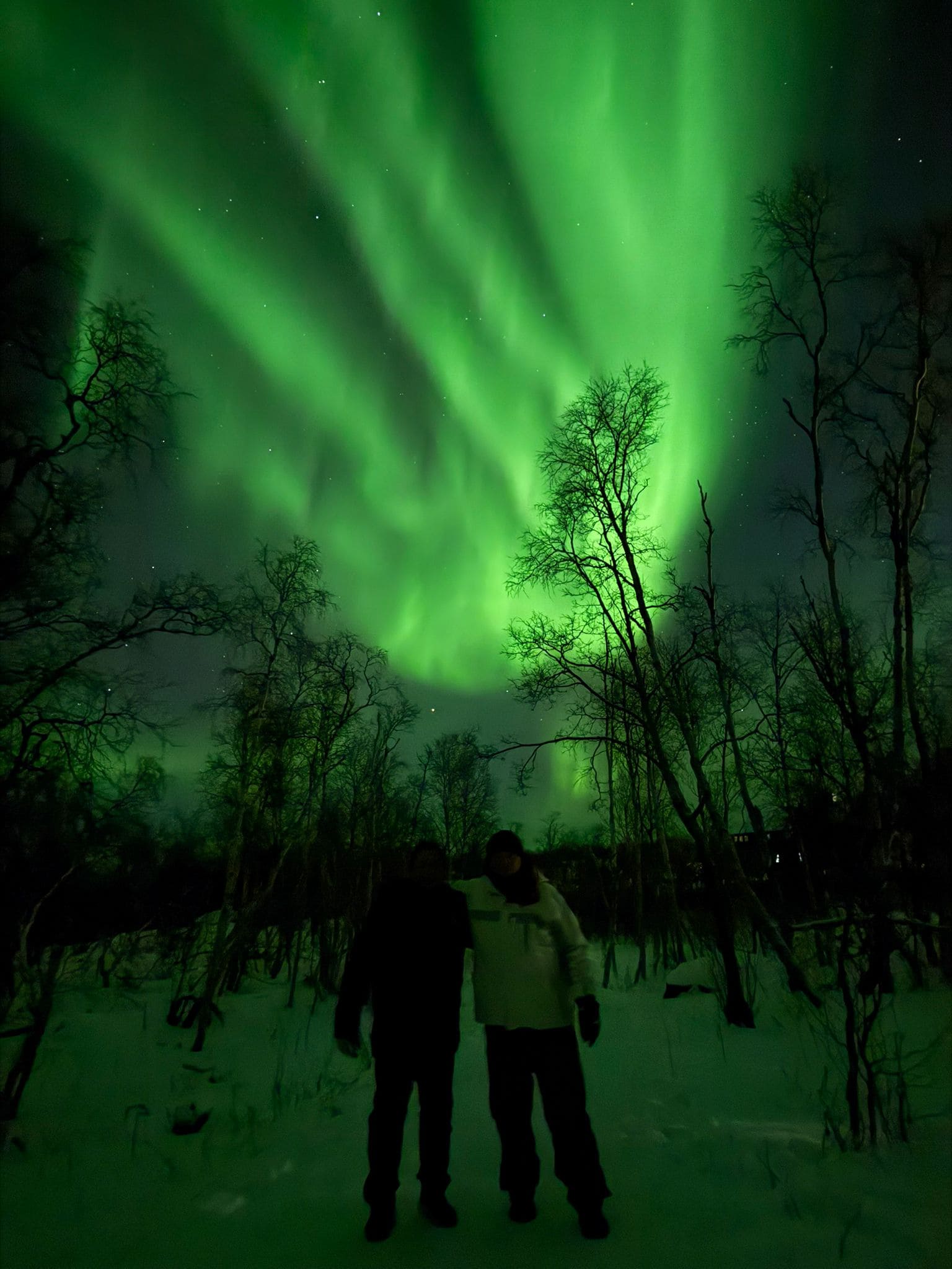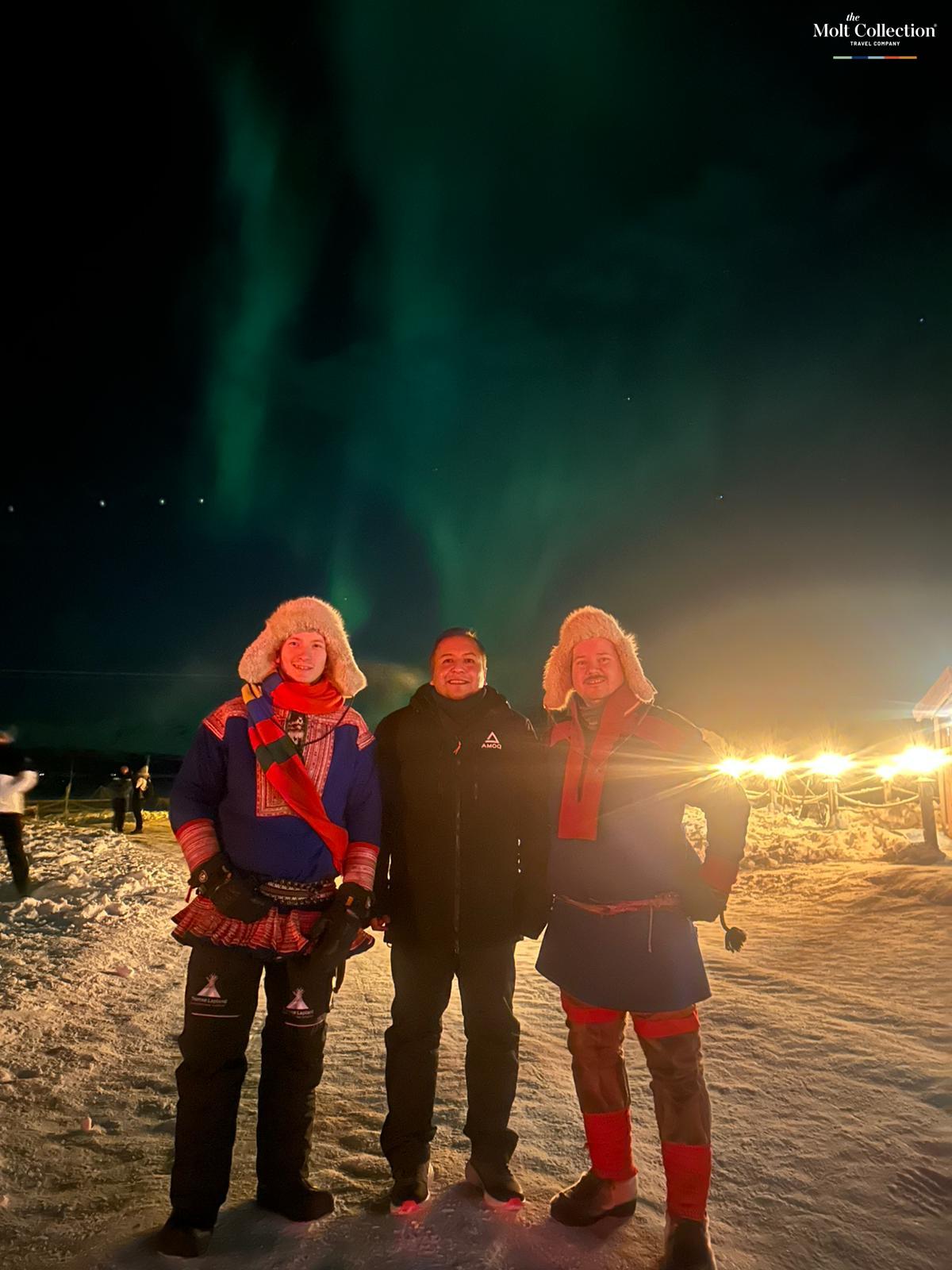 Un grupo de tiendas de campaña en la nieve con luces verdes en el cielo El contenido generado por IA puede ser incorrecto.Aventúrate en el corazón de la naturaleza, donde caminarás entre 300 renos domesticados e incluso tendrás la oportunidad de alimentarlos con tus manos. Después de eso, entra en un Gamme a la luz de las velas para disfrutar de una comida relajada, animada por las evocadoras melodías de joiking (canciones tradicionales sami), mientras desentrañamos el rico tapiz de la historia y las historias sami. Y en las noches claras y mágicas, podrás admirar el impresionante espectáculo de la aurora boreal. Únete a nosotros para una experiencia que no es solo un viaje, sino una conexión atemporal con la naturaleza y la tradición que llevarás para siempre